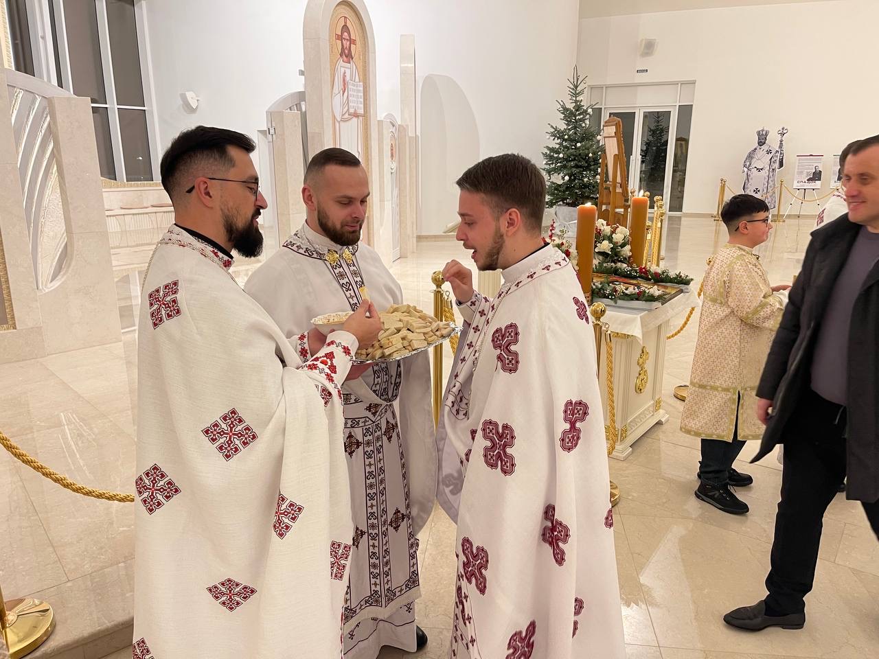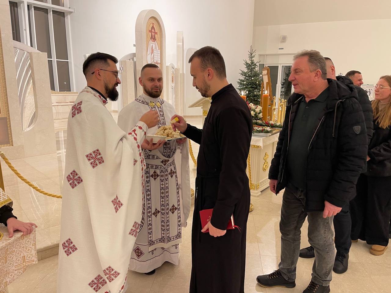 Завершальним акордом святкового вечора стало ділення просфорою. Кожен паломник отримав просфору з медом – як знак родинності, єдності та спільної радості Різдва.